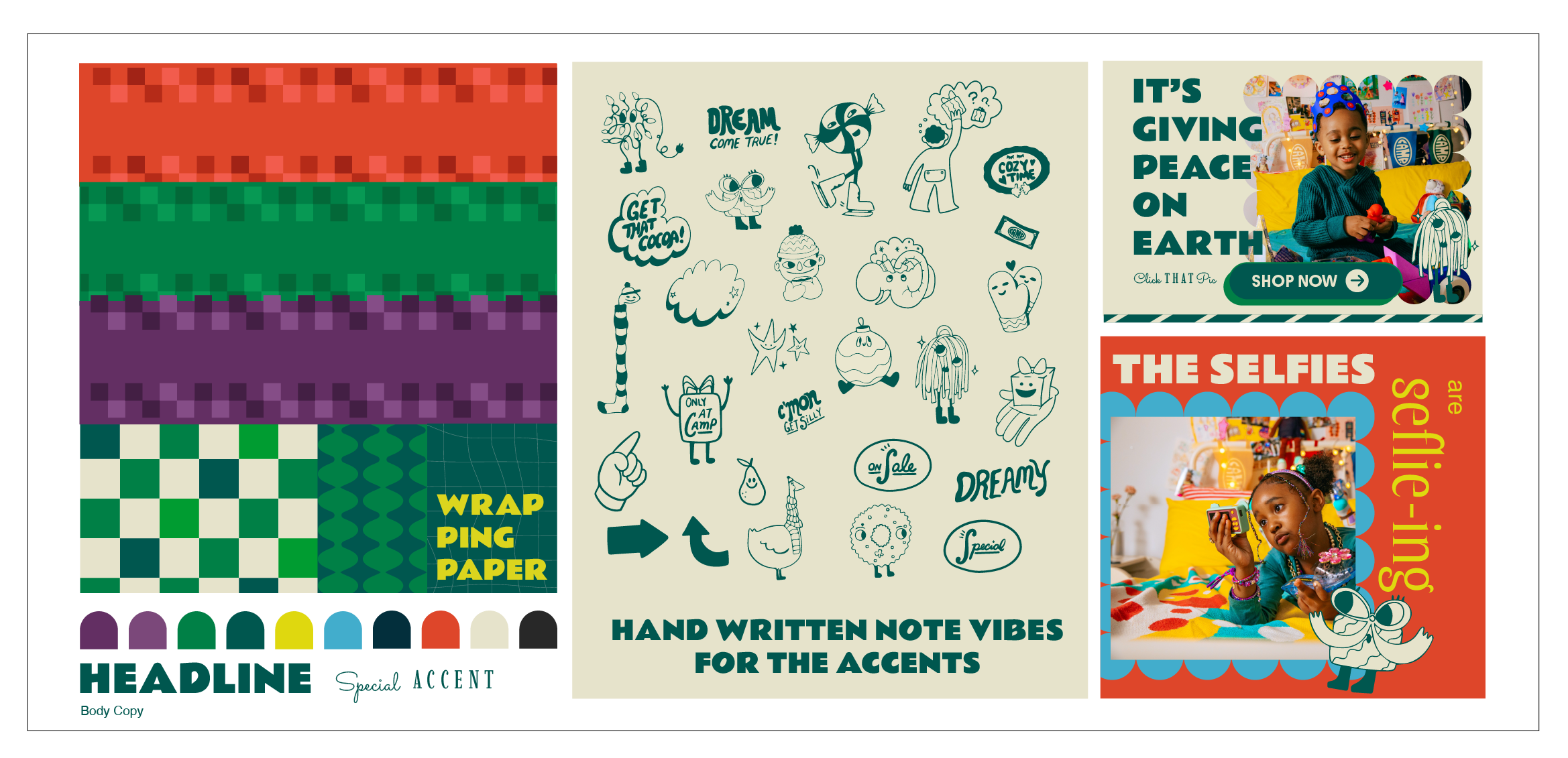 We got ourselves a CAMP holiday campaign that needs a fun, cheeky, and flexible branding package that can be used for anything and everything. We need some modern nostalgia, which is part of the CAMP brand, and the theme is: